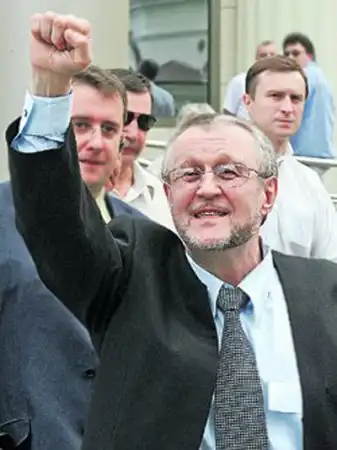 Из другого интервью: "{Это был не арест, это был спектакль самый натуральный! Они выбили дверь в моем доме, эти... из ФБР. Вы знаете, сколько человек меня арестовывало? Две сотни! Вертолеты кружили, машины понаехали. Не хватало только танков с бронетранспортерами...}"
