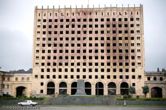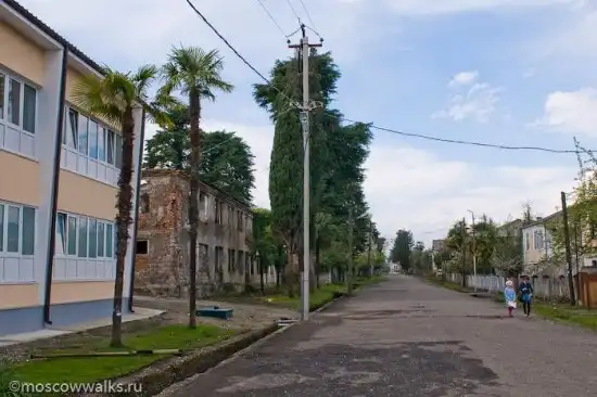 Работать, конечно, никто не хочет. Хочет, чтоб сейчас сюда приехали туристы и деньги привезли, ну или хотя б какой-нибудь полуразрушенный дом продать с участком, благо после ухода грузин множество развалин, будучи развалинами все равно кому-то да принадлежат. Контрибуция, розданная населению типа. Правда, у этого населения нет ни возможности, ни желания что-то с домами делать. Так и стоят.