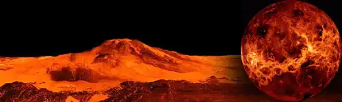 Но вот наступил космический век. На далекую облачную планету опустились советские автоматические станции, которые выяснили, что природные условия на Венере не райские, а, напротив, — адовы! Температура на ее поверхности составляет около 500 градусов Цельсия! При такой жаре вполне могли бы течь свинцовые реки. К этому надо добавить огромное давление в 90 атмосфер.