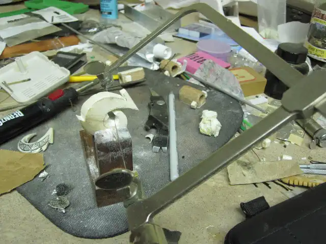 Использовался шлифовальный барабан. Идея в том, чтобы скрыть обводку кости… сделать все закругленным и гладким. Тыльную часть медальона тоже!