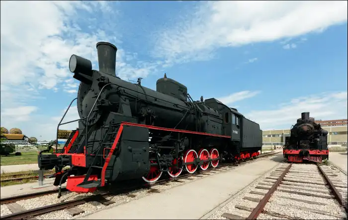 В экспозиции железнодорожной техники представлены паровозы серии «Л», «ЭР», «Т», «СО-17», «ЕА», тепловоз «ТЭМ-1», три бронированные платформы, грузовая дрезина и железнодорожный мотовоз.