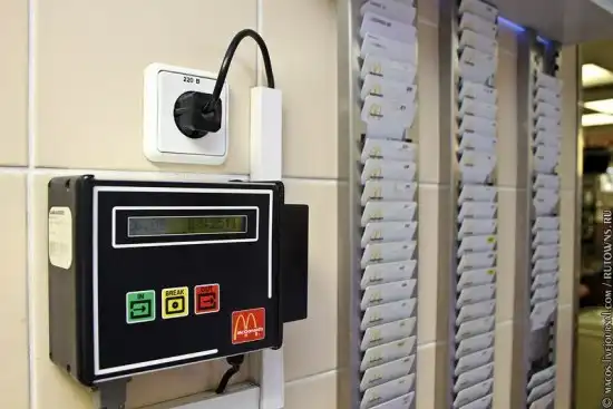 5.Карточки учета рабочего времени. Дело в том, что в Маке зарплата работников оплачивается по часам - примерно 100 рублей в час для обычного сотрудника. Приходя на работу, он должен провести свою карточку через считыватель, уходя - сделать это еще раз.