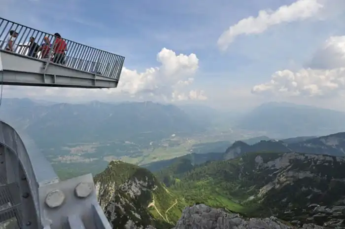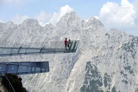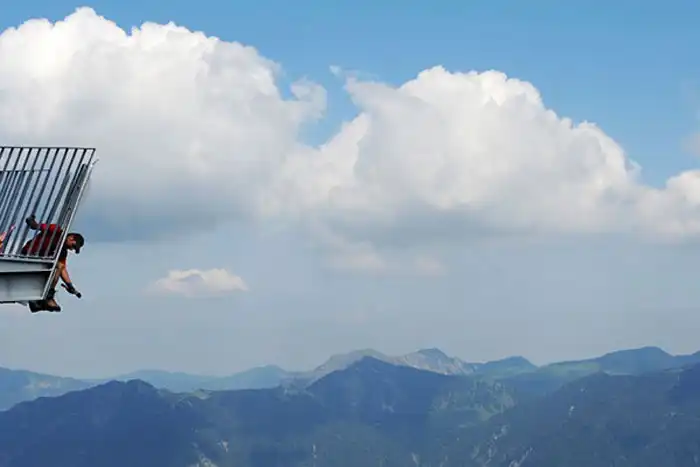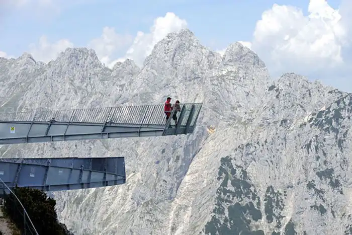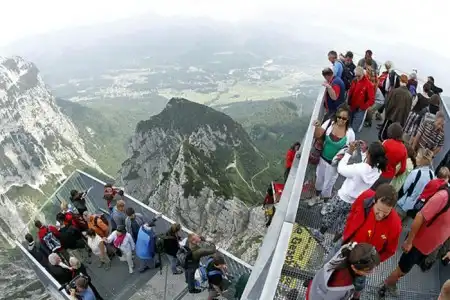 Смотровая площадка AlpspiX — аттракцион не для слабонервных: два небольших помоста, нависших над альпийской «Адской долиной», от бездны отделяет всего лишь решетка.