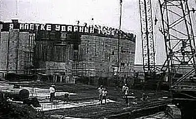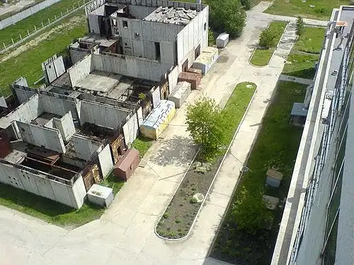 50) Вагончики строительно-монтажного управления (СМУ) и недостроенный корпус дизель-генератора для 4-го блока