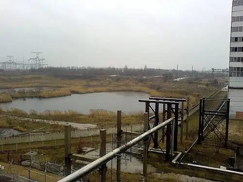 43) 4 блок с крыши санитарно-бытового корпуса (СБК). Внутри 4-го блока находится тренажёрный щит БЩУ