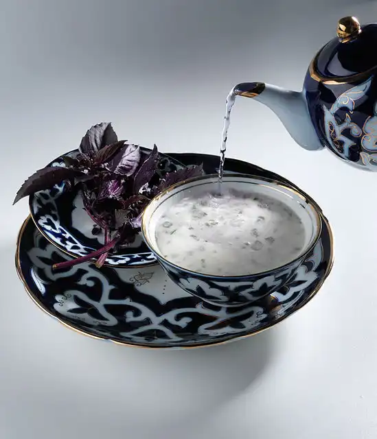 Настой базилика можно использовать, чтобы приправить айран. Только сахар и лимон в этом случае уже ни к чему – айран с базиликом и без того получается с замечательно-сбалансированным вкусом и ароматом.