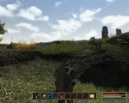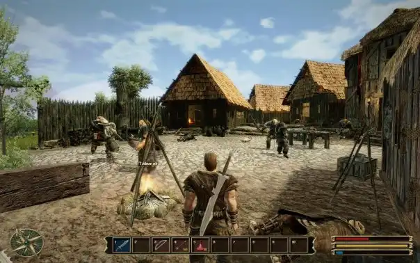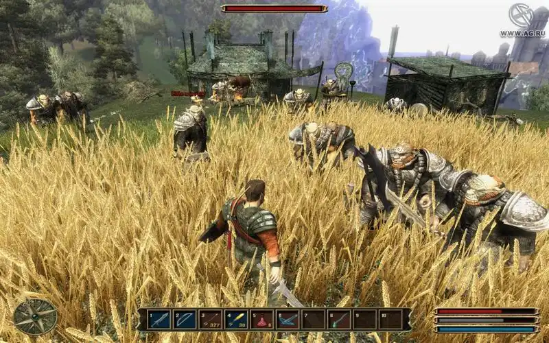 Теперь о том, что будет помогать вам в ваших странствиях. Оружие весьма похоже на то, что было раньше, к примеру игру вы начинаете с мечом «Убийца орков»- меч аналогичного вида и с таким же именем присутствовал во второй Готике, но если там это был один из лучших одноручных мечей, с ним спокойно можно было идти на дракона, то тут это меч начального уровня, буквально через несколько минут можно найти меч, с более высокими показателями. Классов оружия стало больше 6 против старых 4-х (одноручное, двуручное, луки, арбалеты, были конечно и несколько рапир, но особо серьезно этот класс не учитывался). Сейчас вы можете прокачать владение следующим оружием - одноручными мечами, тяжелым вооружением первого уровня (топоры, булавы), тяжелым вооружением второго уровня (тяжелые топоры, двуручные мечи), арбалетами, луками, посохами(обычно актуально для магов). Доспехи остались цельными, т.е. продаются комплектами, у каждой группы есть свои доспехи нескольких классов (от кожанок, до лат), как и раньше вы не сможете сразу приобрести понравившийся доспех, даже имея много денег, сначала вам надо заработать репутацию у данной группы.