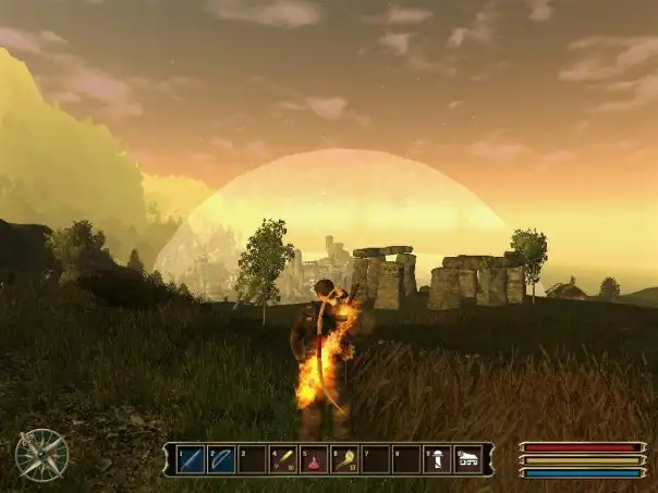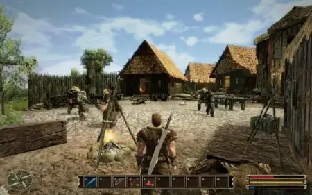 Ролевая система очень проста. Всего три характеристики – сила, ловкость и мана. Четыре навыка – одноручное оружие, двуручное оружие, лук и арбалет. И умения вроде, вскрытия замков, снятия шкур и других. Чтобы повысить все характеристики и навыки, чтоб выучить новые умения требуется очки обучения, которые мы получаем с повышением уровня. Еще есть 6 кругов магии. Руны в зависимости от их силы разделены на шесть кругов. Однако жесткого деления на магов или воинов нету. Тот же маг может махать оружием, а воин использовать руны первого круга.