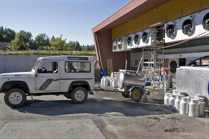 Молоко привозят в бидонах из близлежащих деревень. Основная фишка сыра Груэр и его узнаваемый цветочный вкус в том, что коровы пьют горную воду и едят, помимо травы, еще много горных цветов, десятки видов. Поэтому молоко получается «со вкусом» и этот вкус потом передаётся сыру.