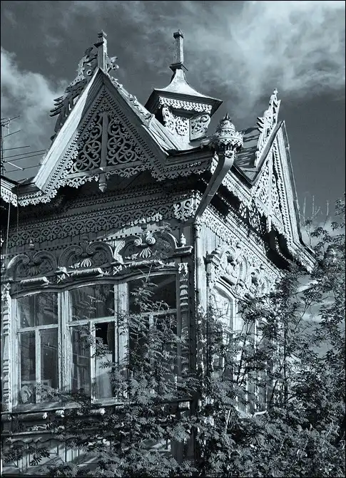 Охватив оконную резьбу.