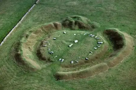 Камни Роллайт, Оксфордшир. По старинному преданию и не камни это вовсе, а воинственный король со своими рыцарями, которые посмели посягнуть на чужие земли, за что были заколдованы древними ведьмами. И только в полночь они вновь становятся людьми, танцуя джингу.