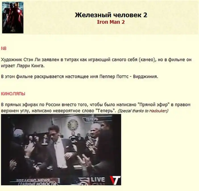 Аватар, Команда А, Железный человек, Повелитель бури, Остров проклятых, Трансформеры 2 и т.п.