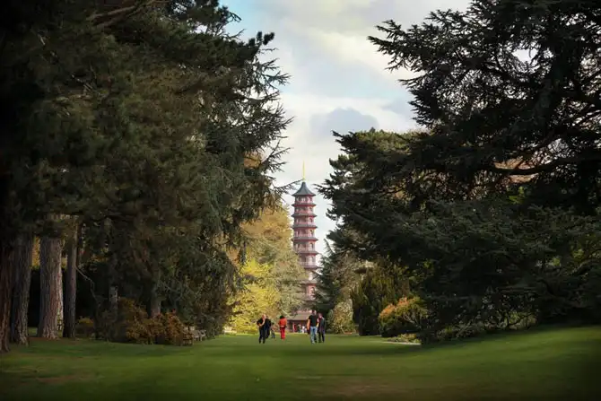 Во время прогулки по кедровой просеке в Королевском ботаническом саду, посетителям открывается прекрасный вид на Пагоду.