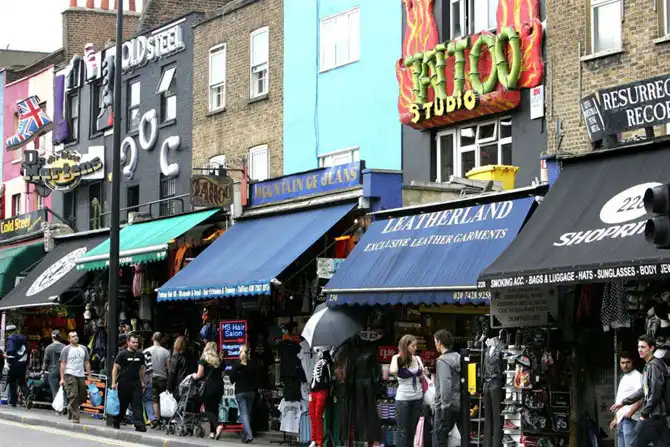 Туристы и покупатели толпятся на распродаже в северном районе Лондона – Камден Тауне. Этот район стал декорациями ко многим фильмам, а в наши дни он привлекает музыкантов и супермоделей.