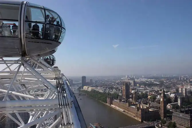 Живописный вид здания парламента, открывающийся с колеса обозрения «London Eye» .