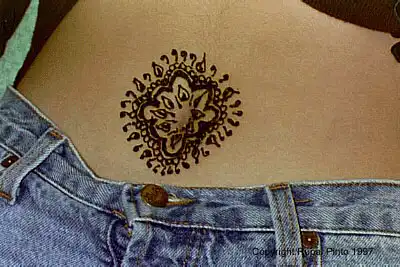 * Средний Восток. Растительные узоры, характерные для арабской культуры. Будничный рисунок простой, сложные узоры выполняются в основном к церемониям. Бедуины, живущие в пустыни, часто просто окунают ступни и ладони в хну, без всякого декора.