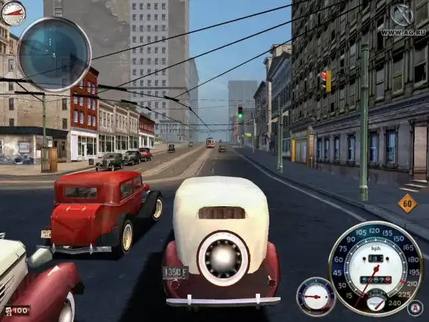 Наконец, о самом приятном и сладком – об автомобилях. В игре присутствует бессчетное множество (что-то около семи десятков) автомобилей. При этом все они отличаются друг от друга не только внешними данными (габариты, формы, цвета), но и ТТХ – весом, ускорением, управляемостью, живучестью (хотя сейчас уверяют, что всего лишь весом и ускорением, но мы то знаем правду). Ориентиром для разработчиков был, ни много ни мало, сам Gran Turismo. И разработчики Mafia смогли приблизиться к его уровню. Ведь в игре также есть превосходная система повреждения машин: капот гнётся, двери изгибаются, стекла бьются, тент рвётся и т.д. что прибавляет погоням ещё большей огонька и драйва – когда полицейский автомобиль на скорости 120 кмчас врезается в столб и теряет передние колеса, по телу разливается приятное тепло.