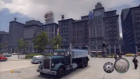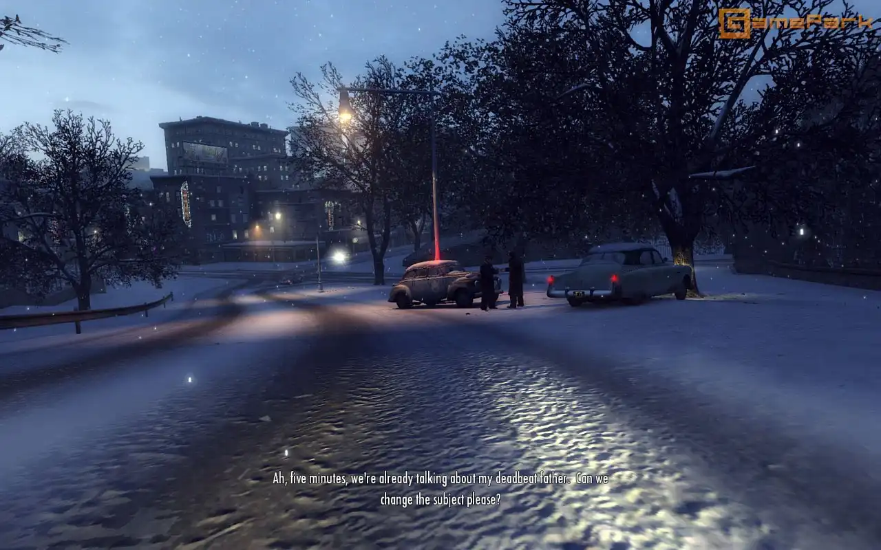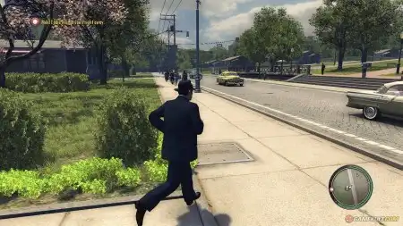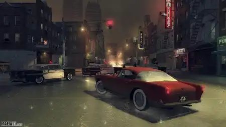 Отлично, но ничего, казалось бы, необычного. Ан нет, разработчики, в попытках создать незабываемую иллюзию живого города и атмосферу, пошли дальше и нарисовали даже анимацию для окон: вечерами можно заметить, как в окнах не только включается свет, но и ходят, занимаются своими делами люди. Всеми силами 2k Czech стараются передать атмосферу большого города, не соврав и не приукрасив реалии соответствующей эпохи, и наполнить Эмпайр Сити жизнью куда как более заметной, чем бесцельное перемещение глупых горожан, как это было ранее. Теперь, к примеру, активно бесчинствовать в городе могут и персонажи под управлением компьютера, и полиция, что по-прежнему на страже порядка, станет усердно преследовать их, ловить, арестовывать и, при необходимости, убивать. Водители, как и сам игрок, тоже могут попасть в аварию, после чего либо скрыться с места событий, либо выйти и оценить ущерб, обменяться даже номерами страховок. Ну, или пререкания начать - как вариант. А там уж и полиция подоспеет, ибо случайный прохожий, что оказался невольным свидетелем аварии, быстренько добрался до ближайшего телефона. Это ещё одна оригинальная фишка Mafia 2 - здесь интеллект соперников и полицейских основывается лишь на том, что они видят или слышат, на информации, полученной лично ими.