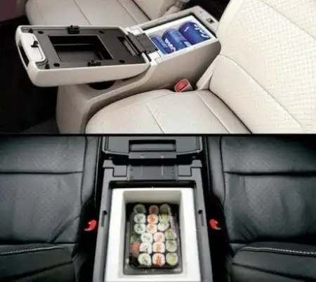 В подлокотнике возле водительского сидения в автомобиле обычно находится ящик для хранения личных вещей. Но туда же можно встроить и холодильник, чтобы всегда имя рядом бутылку прохладного напитка или немного охлажденной еды.