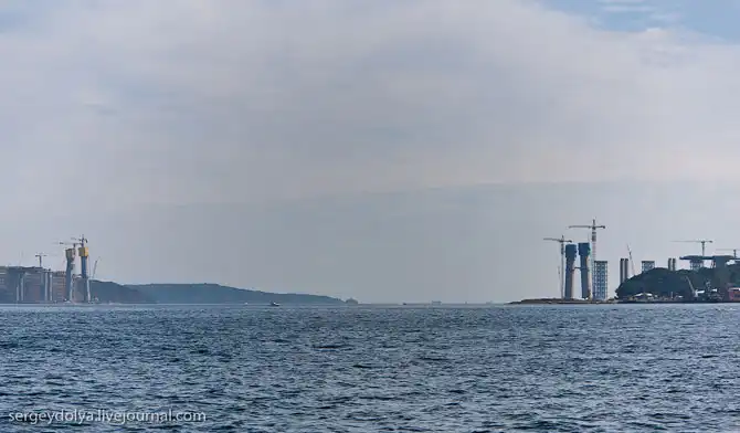 Вдалеке видны пилоны строящегося моста через бухту Золотой Рог. Жаль, что погода подкачала: