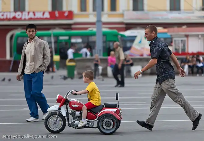 На центральной площади можно взять на прокат детский автомобиль. Сотрудник проката смешно бегает за детьми. Наверное, чтобы они не укатили в Хабаровск: