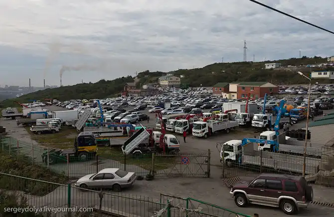 В городе, на сопках, есть один из самых больших автомобильных рынков страны “Зеленый угол”, где продаются, в основном, японские праворульные автомобили: