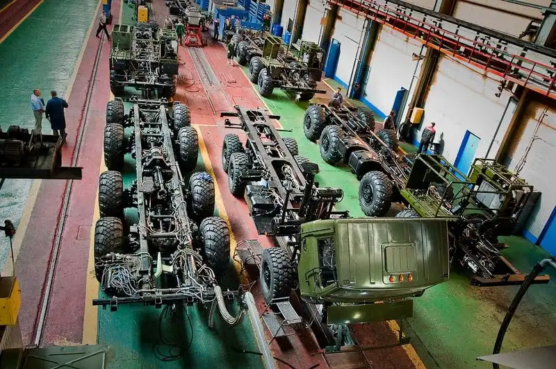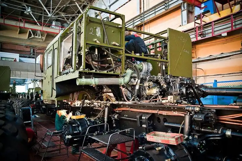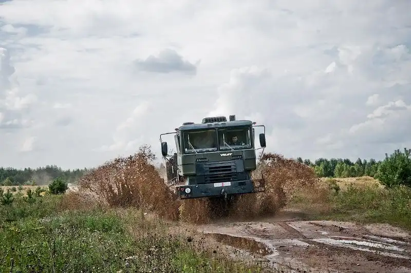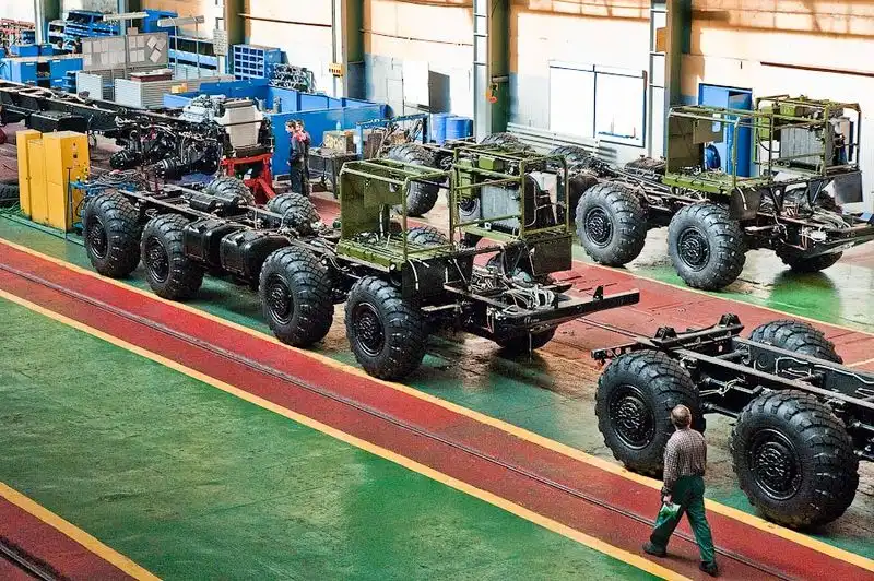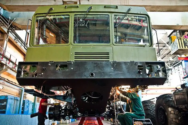 Минский завод колесных тягачей МЗКТ в советское время был секретным подразделением МАЗа. Именно его многоосные автомобильные шасси везут по Красной площади в дни парадов ракеты, установки ПВО и тяжелую технику. После распада Союза МЗКТ стал самостоятельным предприятием и находится в ведении Министерства обороны Республики Беларусь. Сегодня он выпускает продукцию под маркой "Волат", что означает "Богатырь". Фотокорреспонденту недоСМИ удалось проникнуть на конвейер и передать редакции снимки раньше, чем их получили американские шпионы.