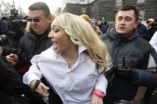 но ее чаще всего можно заметить на акциях, которые охотно и часто устраивают девушки, выступая практически против всего: то Саша ворвется на избирательный участок, где голосует Янукович, и, обнажившись до пояса, начнет скандировать перед толпой журналистов "Досить гвалтувати Україну!" ("Хватит насиловать Украину!"),
