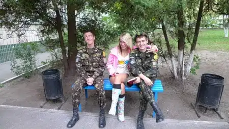 Чаще всего в районный отдел их забирают после "прорывов". Милиционеры, охраняющие официальный митинг, сразу предупреждают: "Дивчата, только щоб без глупостей". Девчата усмехаются: "Без каких?" Милиционеры краснеют: "Ну... шоб без цього. Щоб нэ оголялыся". Но они все равно оголяются, их забирают и штрафуют по 173-й статье Административного кодекса — на это, кстати, тоже заранее выделяется часть бюджета. И хотя в 173-й статье написано про "демонстрацию гениталий", а женская грудь — это уж никак не гениталии, штрафуют все равно. Приписывают хулиганство — находят "свидетелей", которые подтверждают, что девушка материлась. А в конце протокола все равно обязательно, на всякий случай добавляют "Ще i оголялась", то есть еще и оголялась.