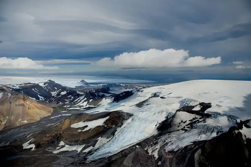 Темные тучи нависли над льдами и снегами в западной части Исландии. (© Robert B. Haas)