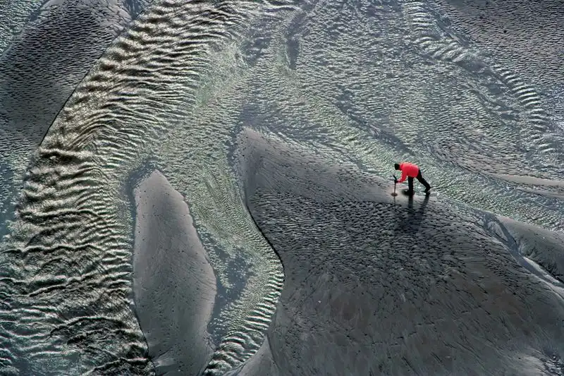 Мужчина ищет моллюсков на ужин в Клэм Галч, Аляска. (© Robert B. Haas)