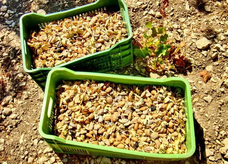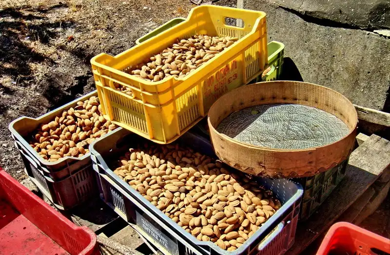 5. Повсюду стояли ящики с собранным миндалем.