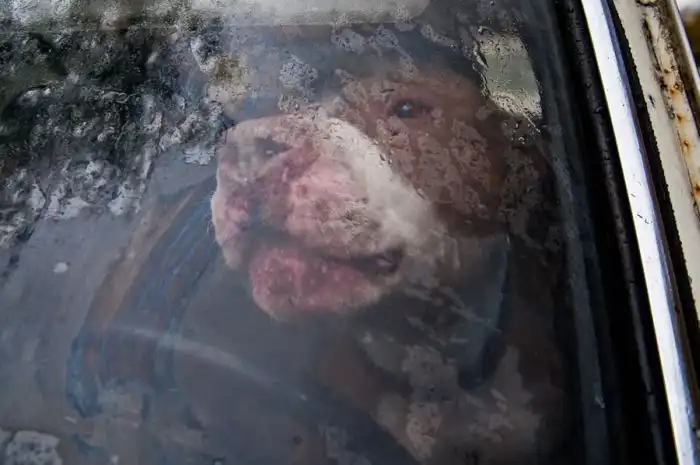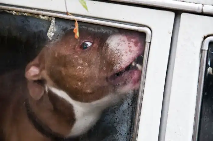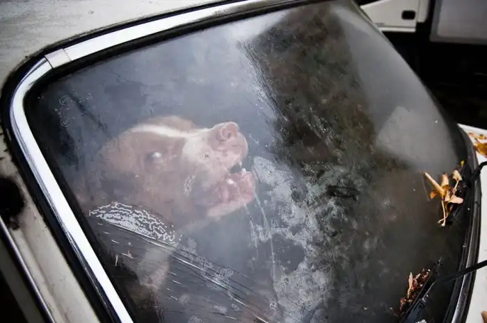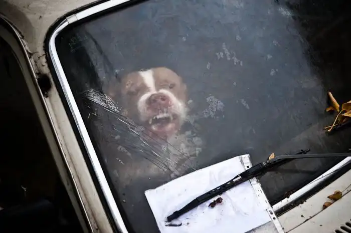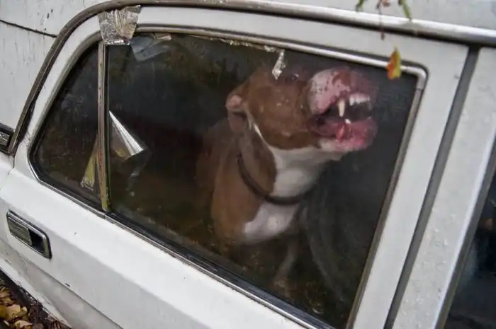 Стаффордширский терьер Джой вот уже полгода живет в старом автомобиле.