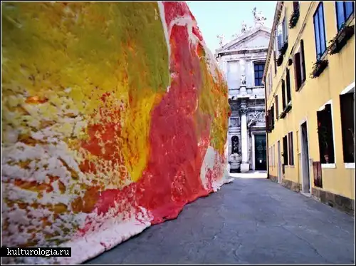 Кто бы мог подумать, что в таком чистом, красивом, ухоженном европейском городе, как Венеция, на улицах можно будет наткнуться на огромные куски жевательной резинки? И ладно бы они просто валялись, выброшенные неряхой-жевуном, а так все гораздо сложнее. Где-то кусок жвачки перегородил проезд, где-то прилип к асфальту и расплавился, став огромной лужей, а то и вовсе нахально торчит посреди улицы, как столб... Кстати, обвиняют в этом происшествии скульптора Симона Декера (Simone Decker).