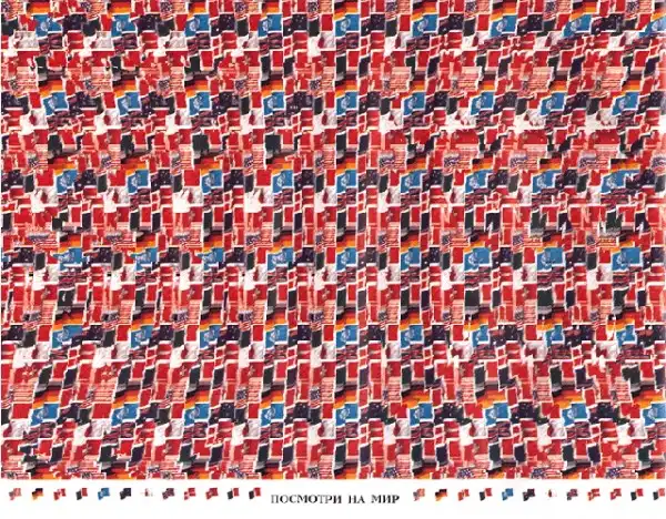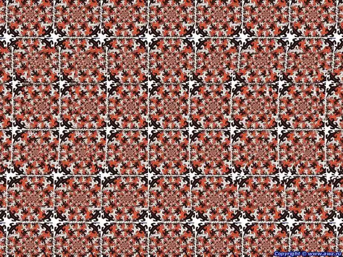 Правило рассматривания. Смотрите сквозь стереограмму, на воображаемую точку за ней, с расстояния 15-20 см. в течение одной - двух минут. Возможно, объемное изображение поначалу будет нерезким, но после нескольких упражнений оно несомненно станет абсолютно отчетливым.