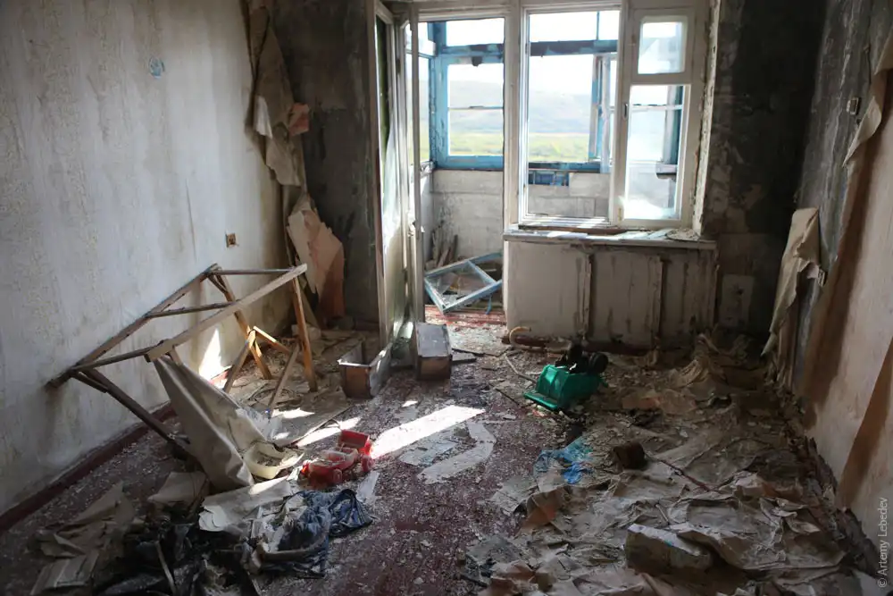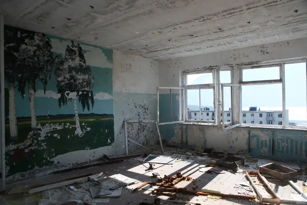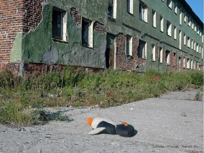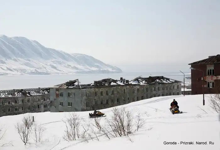 Сейчас гарнизон представляет из себя жалкое зрелище: жилые дома смотрят на мир пустыми глазницами окон, по улицам бродят лисы и медведи. О некогда базировавшемся здесь подводном флоте напоминает лишь остов старой УТСки, лежащей на отмели у выхода из бухты.