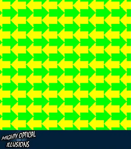 Что вы видите тут при первом взгляде? Желтые стрелки влево, или зеленые - вправо? Правильного ответа нет, но разные люди видят разные стрелки в первый момент (я - желтые)