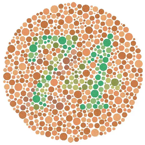 С помощью этого рисунка можно проверить своё цветовое зрение. Люди с нормальным зрением видят в кружке число 74, дальтоники — число 21.