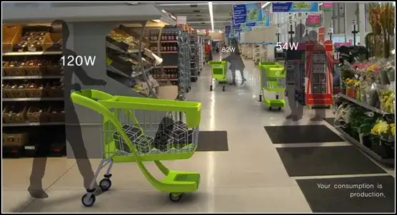 А вот дизайнеры Kitae Pak и Inyong Jung предлагают установить генераторы на тележки, коих полно в каждом супермаркете. Конечно, таким образом невозможно обеспечить электричеством все здание магазина, но вот сэкономить какую-то ее часть – вполне можно.