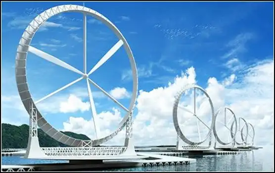 Проект профессора Yuji Ohya из японского Kyushu University подразумевает создание более-менее привычных нам ветряков. Только они будут огромными (112 метров в диаметре) и установлены массово в одном месте. Так что получится целый искусственный остров, созданный для выработки ветряной энергии.