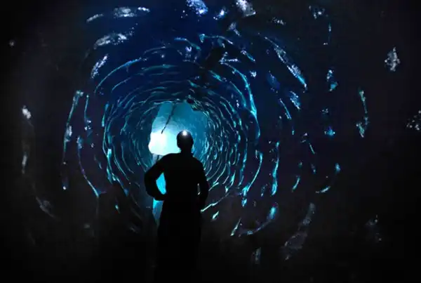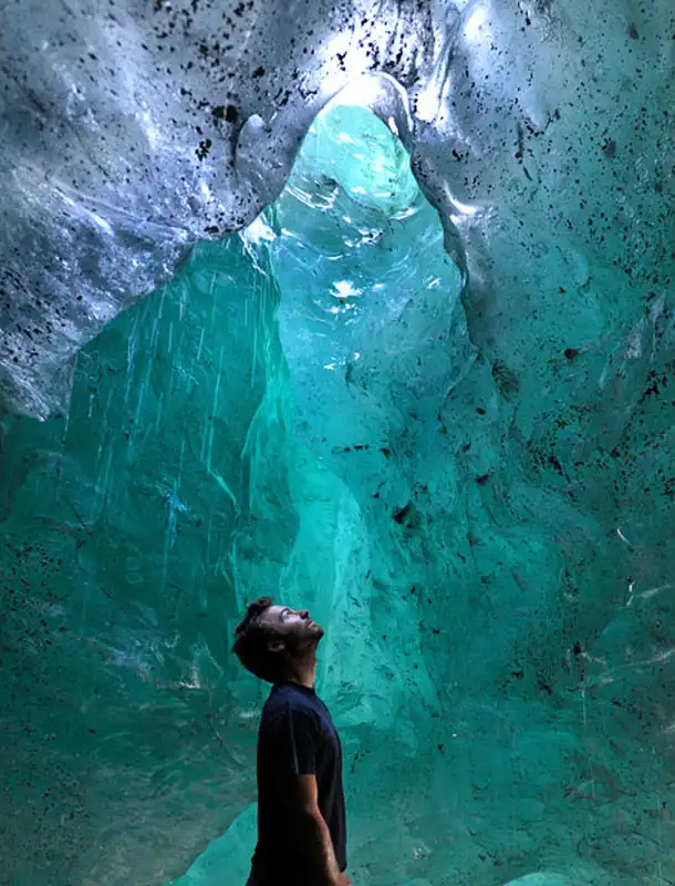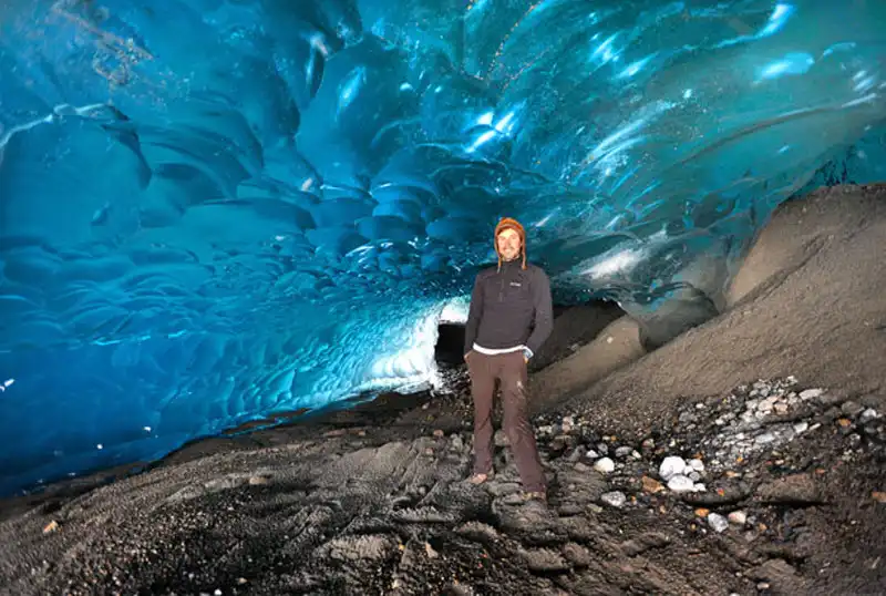 Эрик стоит в пещере в Национальном парке Лос-Гласьярес.