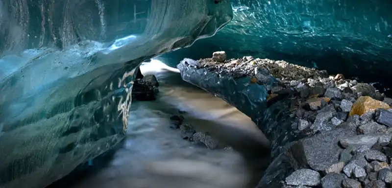 Фотография, сделанная в леднике в швейцарских Альпах.