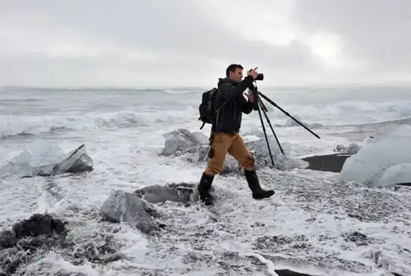 Эрик Гут устанавливает камеру в Исландии.