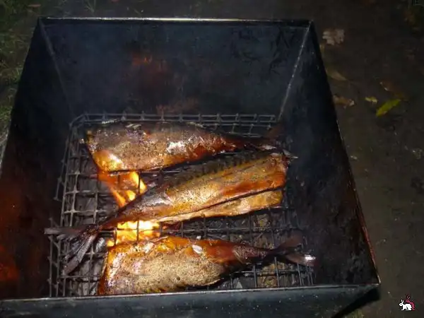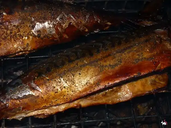 На приготовление рыбы может уйти, с момента появления дыма, от 15 до 25 минут. Все зависит от ее размера и толщины.