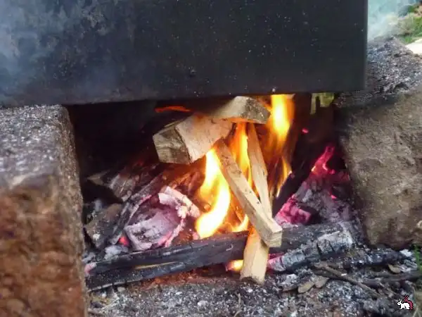 Огонь одно из самых главных, он должен быть равномерным и не слишком слабым-сильным. Посему заранее прожжем дровишки, чтобы была подложка из углей.