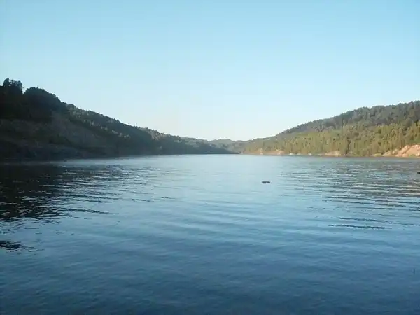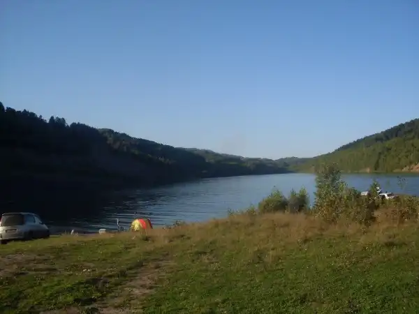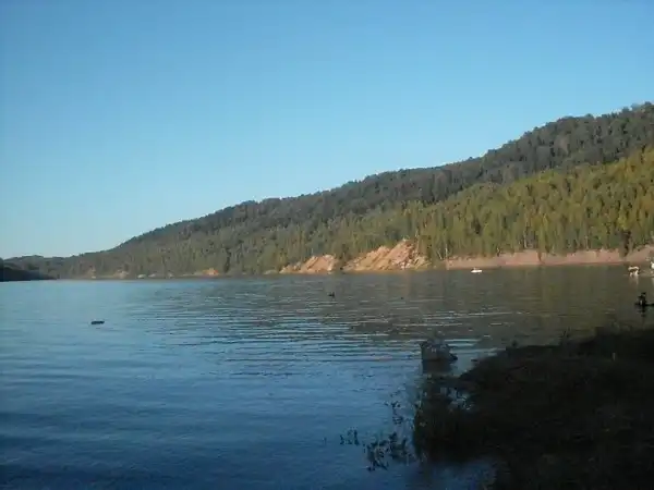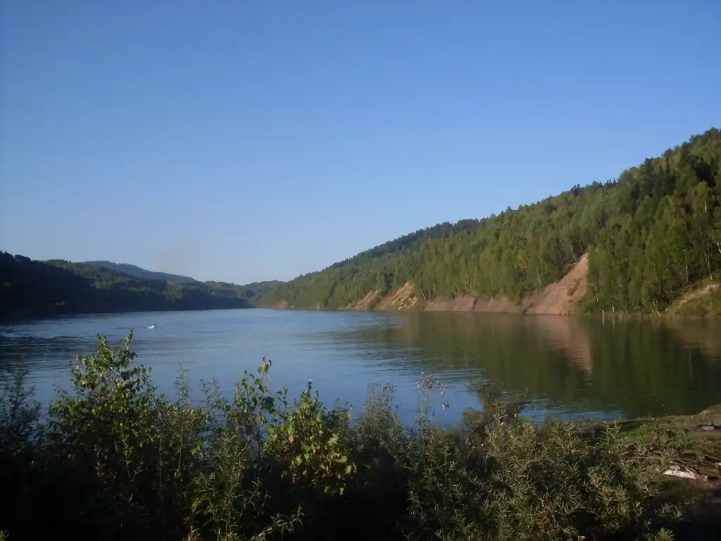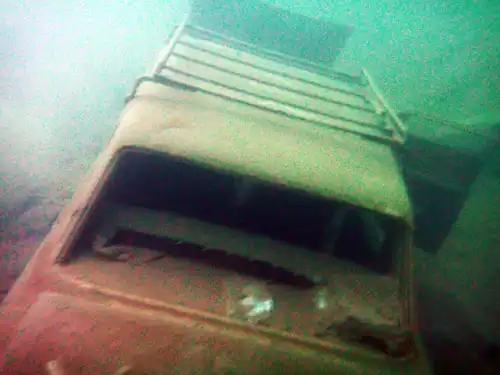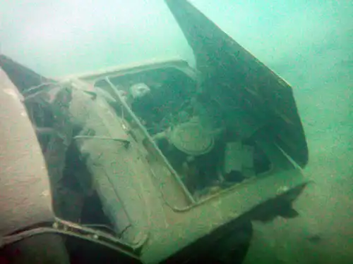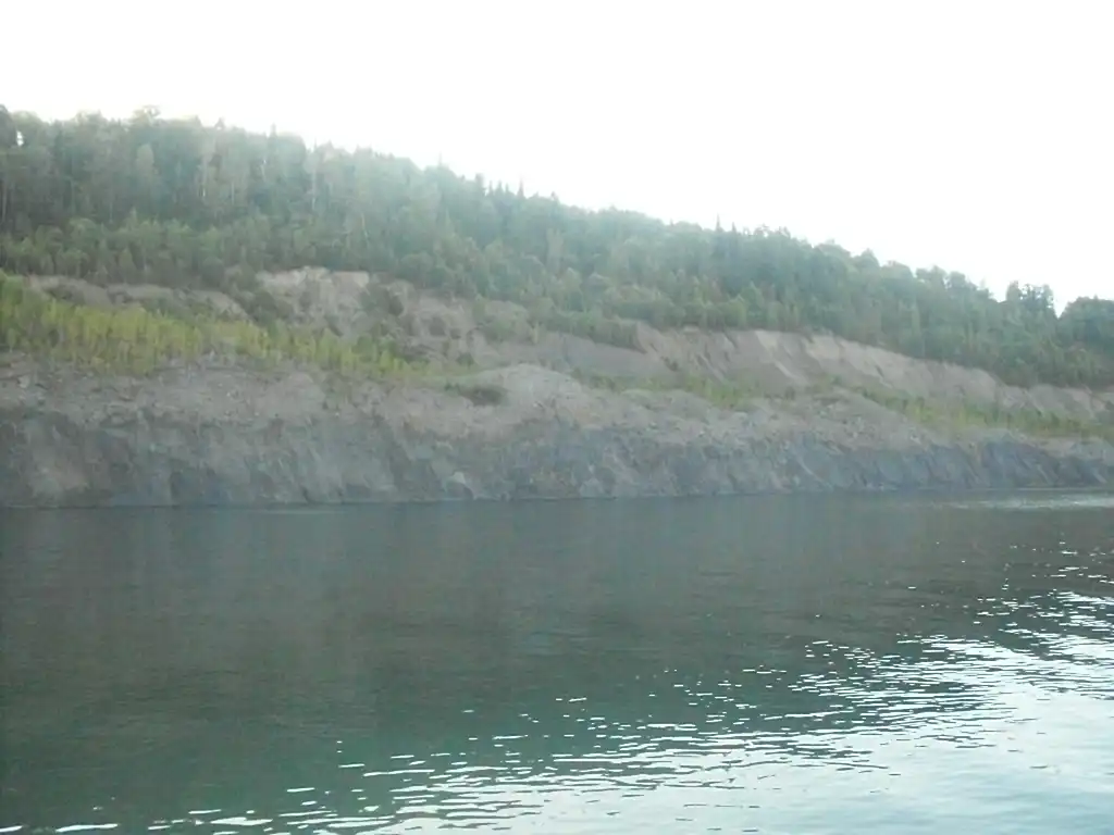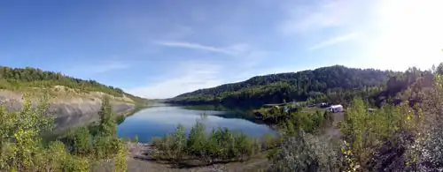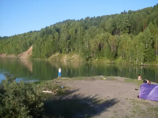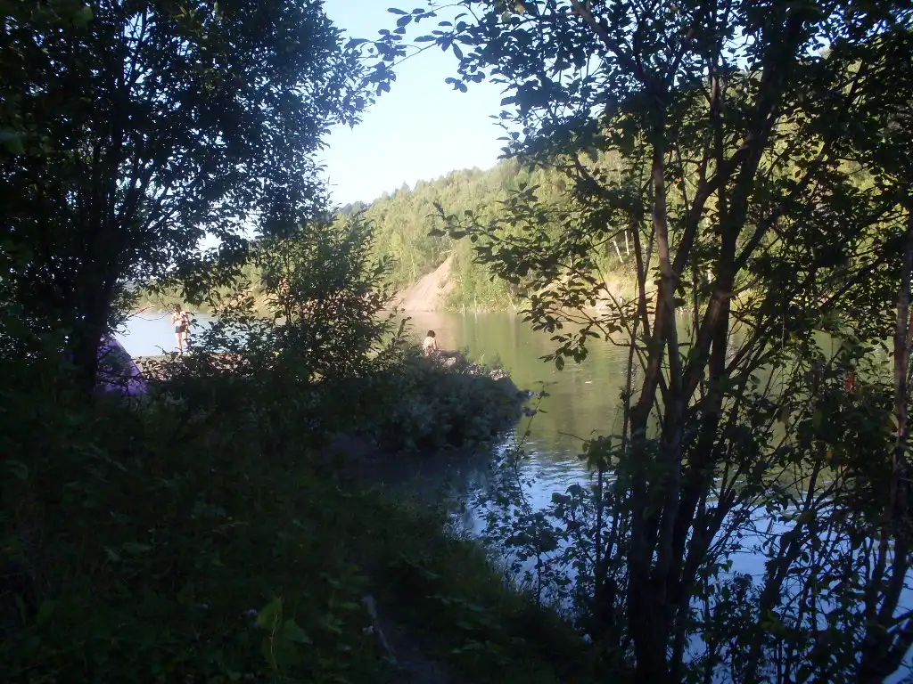 Южная оконечность карьера разделена на две бухты. Из правой вытекает речка, а также в ней, на глубине около 17 метров, затоплен автомобиль "Жигули".