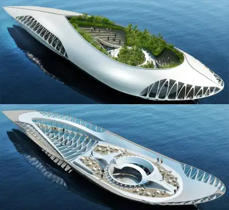Физалия – инновационный научный архитектурный прототип судна, цель которого – удовлетворять потребности плавающих очистительных станций нового поколения с целью сделать популяцию чувствительной к экологическим инструментам без серы и углерода. Концепция судна-амфибии – наполовину сухопутная, наполовину водная плавающая агора, которая не только экономит воду, заботясь об экологии, но и разрабатывает стратегически разумные решения для речной сети. Это судно способствует окружающей среде не только экономя воду, вновь наполняя грунтовые воды, контролируя рециркуляцию домашней, промышленной и дождевой воды, очищая сельскохозяйственные загрязнения (нитраты и прочие удобрения и вещества для растений), опресняя морскую воду; но и развивая водный речной туризм и коммерческий транспорт, водный спорт, сельскохозяйственные системы ирригации, производство электричества с помощью воды, защиту от наводнений и многое другое.
