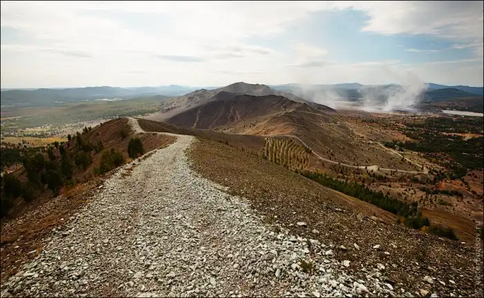 После переработки породы остаются тысячи тонн шлама. Его сваливают недалеко от завода. В результате образуются вот такие терриконы.