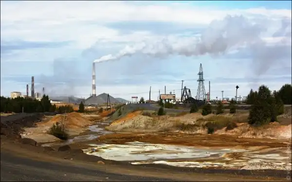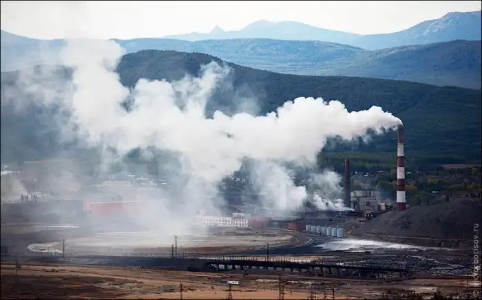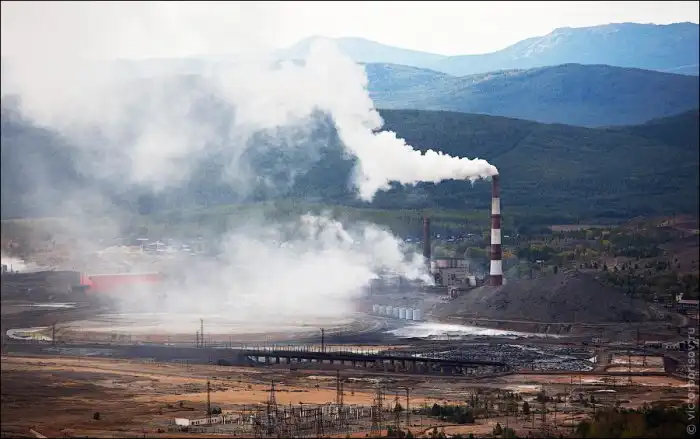 За 100 лет комбинат успел выжечь и засыпать шлаком огромную территорию вокруг себя. За год работы комбинат выкидывает в атмосферу более 180 тонн газов, которые выпадают в виде кислотных дождей на прилегающую территорию.