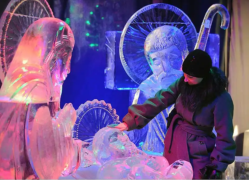 Над экспозицией Ледяного дворца трудились 12 лучших мастеров ледяной скульптуры России - неоднократные победители международных конкурсов и фестивалей.